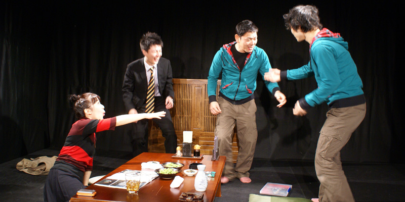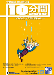 すでにチラシなどでご存知の方も多いと思いますが、今回の芝居はタイムリープ、つまり同じ時間を繰り返す話です。タイムトラベルものといえば、高校生や大学生が時間を超えて戦国時代の織田信長や幕末の坂本龍馬と遭遇したり、若い頃の自分や、年を取った自分に会いに行くような、ベタな設定も好きなんですが、今回は題名通り、たった10分間の時間移動という地味な設定です。娯楽作品として、リラックスして観ていただければと思います。 サブタイトルの「タイムリープが止まらない」は自分でもあまり気に入っていないのですが、「10分間」だけではどんな内容かもわからないと思ってつけることにしました。題名をつけるのが下手なんです。 最後に、第12回公演の実現にあたり、ご尽力ご協力いただきました方々に、この場を借りて御礼申し上げます。 ■ 公演を終えて 初演と今回の共通点として、上演したのがワールドカップイヤーということがある。まあ、偶々なんだけど。でも4年ごとに上演するようになったりして。しかし、初演のようにサッカーネタを盛り込みたかったのに、今回の公演は閉幕してから時間が空いていたので、別の設定に変更することにした。 『10分間』はもともと短篇オムニバス公演になる予定だった。ただのバラバラの内容のコントをするより、何らかの「括り」で統一感のある内容にしたら、面白さも増すし、芸術性も上がる(?)んじゃないかとぼんやり考えてて、ある設定を思いつく。 「同じ時間に起こった出来事を集めたコント」 しかし、その場合、出演者が多い方が面白い。あまりいなかったので、同じ役者で同じ時間の話をやるならどうするのがいいか、という悩み派生した、「繰り返しもの」だった。 初演は準備期間が短かったにしては頑張った内容が書けたと思う。でも、直しの入れる余地はまだまだ大いにあった。そのうちの最大の要素が尺の短かさ。あと何回か繰り返しを足したい。この芝居の「骨の長さ」を伸ばすのは難しいことじゃないけど、「関節を増やす」のは何倍も難しく、改良する意欲はあっても、本当にできるのかわからなかったし、なかなか光が見えて来なかった。「登場人物を増やす」という課題も最初の方からあって、終わってみれば、それらをなかなかいい感じで果たせたのではないかなと、自分では思うわけだけど、どうかな? もともと、「第12回公演は、ちょっと軽めの奴にしよう」と思っていて、「テーブル一つで魅せる」10分間を再演しようと決めたときは、ここまで面白くなるとは予想してなかった。沢山アイデアを出してくれた役者のみんなの力が大きかったし、その原石を4年前に生み出してくれた初演の出演者も相当デカい。(中野)