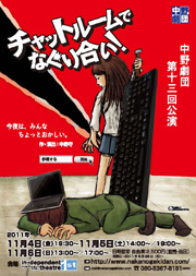 ■ 宣伝動画 ■ 演出家挨拶 2003年に旗揚して早いもので8年になります。 その間にいろいろ変わったこともあるけど、変わらないこともあります。 情報技術をあまり使いこなせていないという点が「変わらない」ことの一つ。 もう少しITを駆使した劇団になることを期待していました。 うちのメンバーは社会人が多いし、住んでいる所もバラバラなので、会えない時間をどう上手く使うかが作品の善し悪しに影響するんだという考えが前からあった。そんな時にチャットで少ないコミュニケーションを補えないかと試してみたけど、本題に入るまでに相当時間食って、これは使えないなと思いました。 今回で中野劇団としては13回、個人としては20回目の作演出となります。