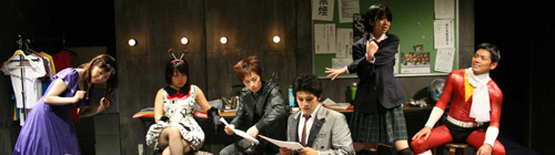 ある小劇団の本番中の舞台の表と裏を2幕構成で描いたコメディ。